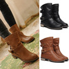 Women Artificial Martin Ankle Boots Flat Vintage Style Buckle Motorcycle Boots